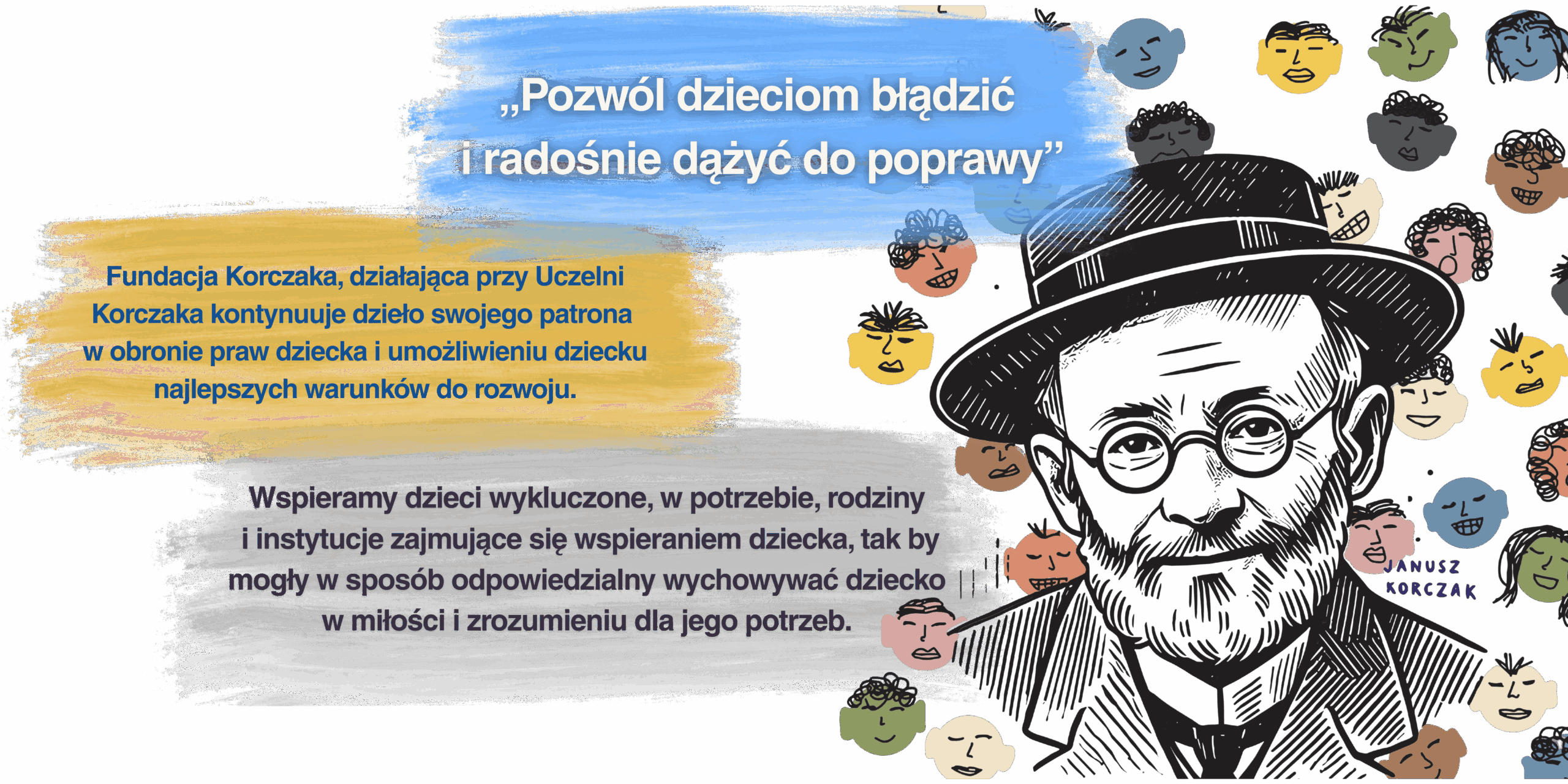 Misją Fundacji Korczaka jest ochrona praw dziecka oraz wsparcie dziecka w rozwoju zgodnie z pedagogiką Janusza Korczaka.