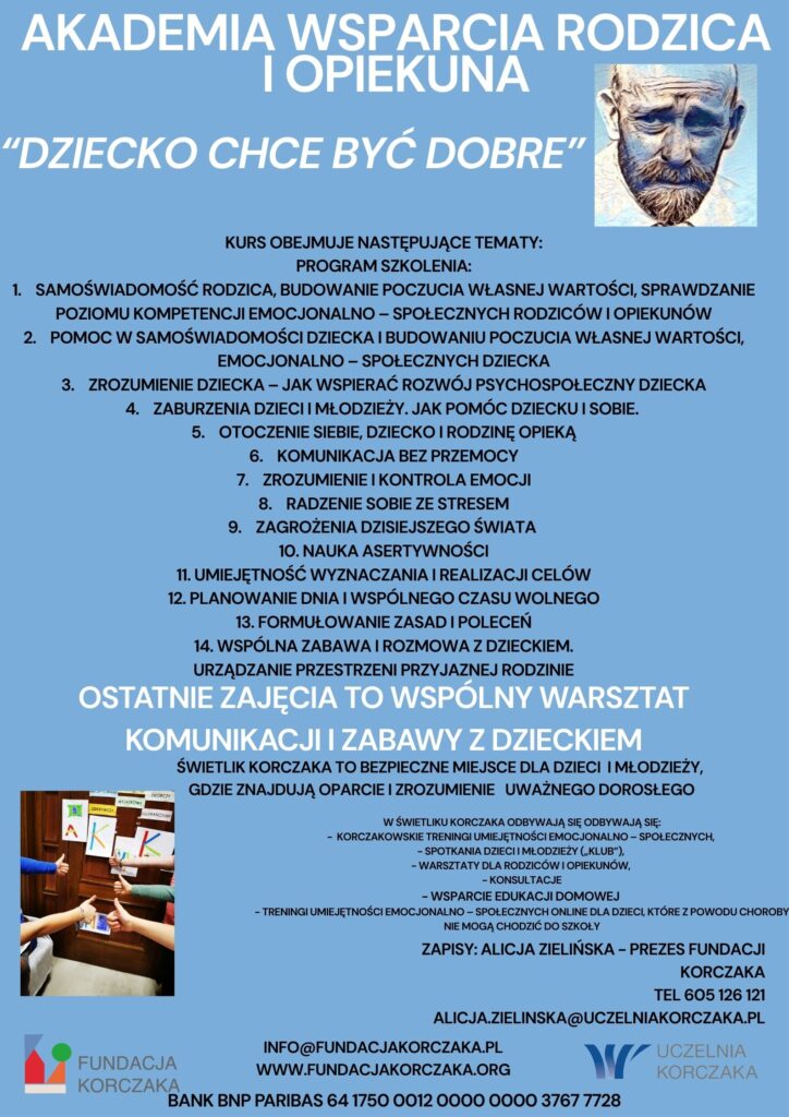 Kurs prowadzi Fundacja Korczaka. Certyfikaty i zaświadczenia zostaną wydane przez Uczelnię Korczaka, która prowadzi Fundację Korczaka.