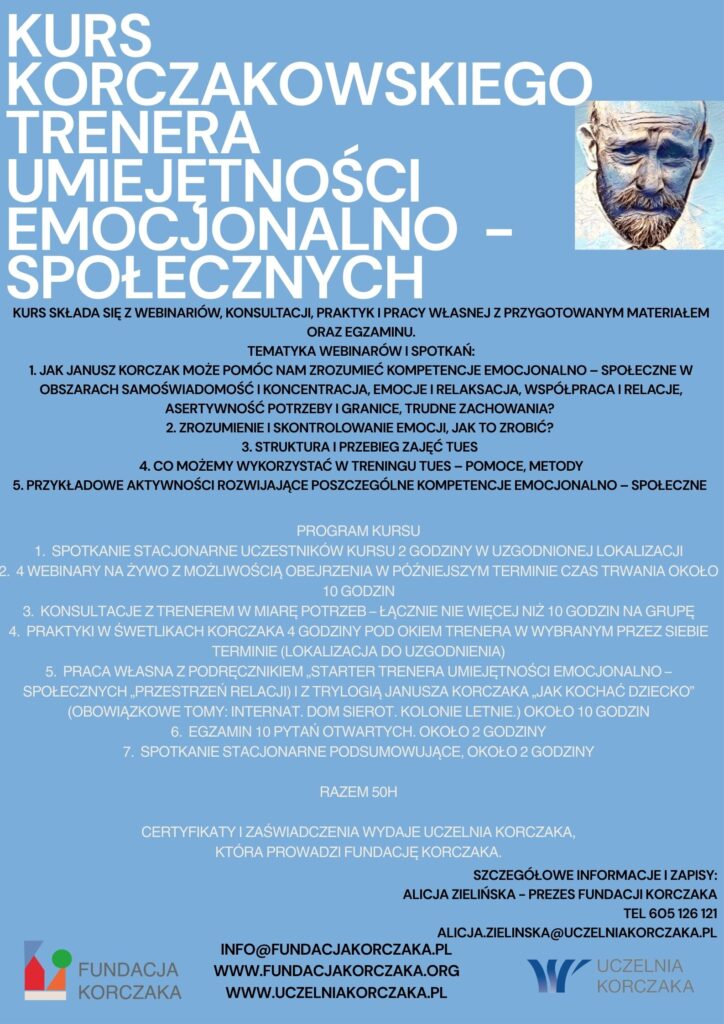 Kursu trenera umiejętności emocjonalno – społecznych „Przestrzeń relacji” opartego na pedagogice Janusza Korczaka